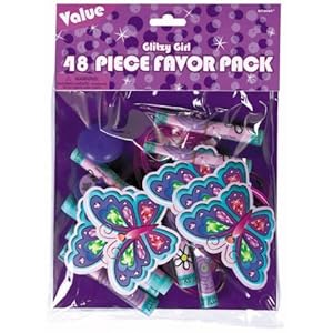 Product Description : Each package of Glitzy Girl Favors Value Pack includes 8 plastic loot bags and 40 assorted favors enough for 8 guests. Favors includes 8 sticker shapes, 8 activity sheets, 8 puzzle mazes, 8 bracelets, 8 wooly balls, 8 mini tops.WARNING: CHOKING HAZARD - Small parts and marbles. Not for children under 3 years.