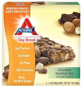 Atkins Day Break, Chocolate Hazelnut Bar, 1.40 oz Bars, 5 count box ( pack of 2)